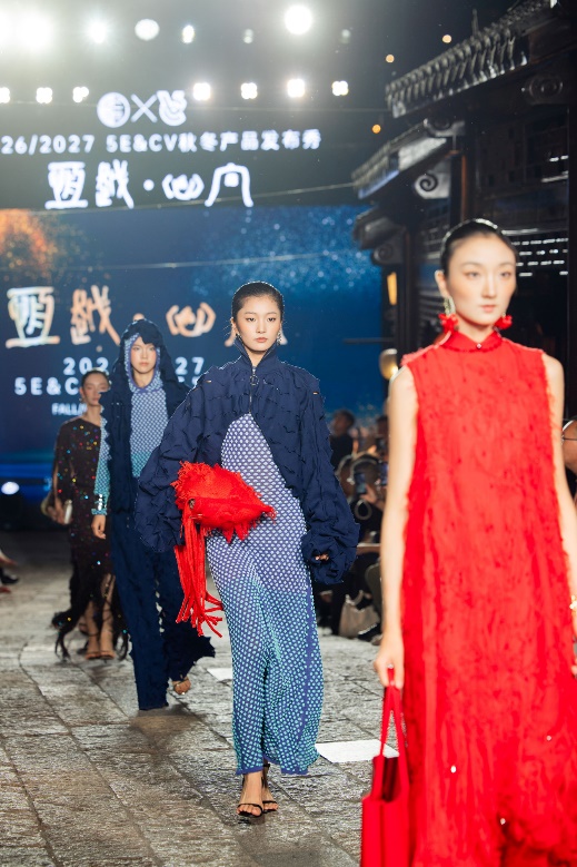 The 2026/2027 5E&CV HengYue • XinXiang Autumn/Winter Knitwear Fashion Show dazzled at the cultural landmark Panlong Tiandi. This spectacular event was jointly conceived and presented by our university's Shanghai International Fashion Innovation Center and Cixing (Shanghai) R&D Center. The runway collection drew its core inspiration from the elements of metal, wood, water, fire, and earth, interpreting the primordial language of the Five Elements universe that decodes the laws governing all things. The entire show unfolded across five chapters, delivering a fascinating presentation of contemporary Shanghai fashion culture while offering a fresh interpretation of Shanghai-style New Chinese clothing. The designs deeply integrated knit craftsmanship with the explicit design language of Five Elements mathematical philosophy, giving birth to a new knit aesthetic that balances rationality and sensibility, endowing knit design with boundless creativity and possibilities.