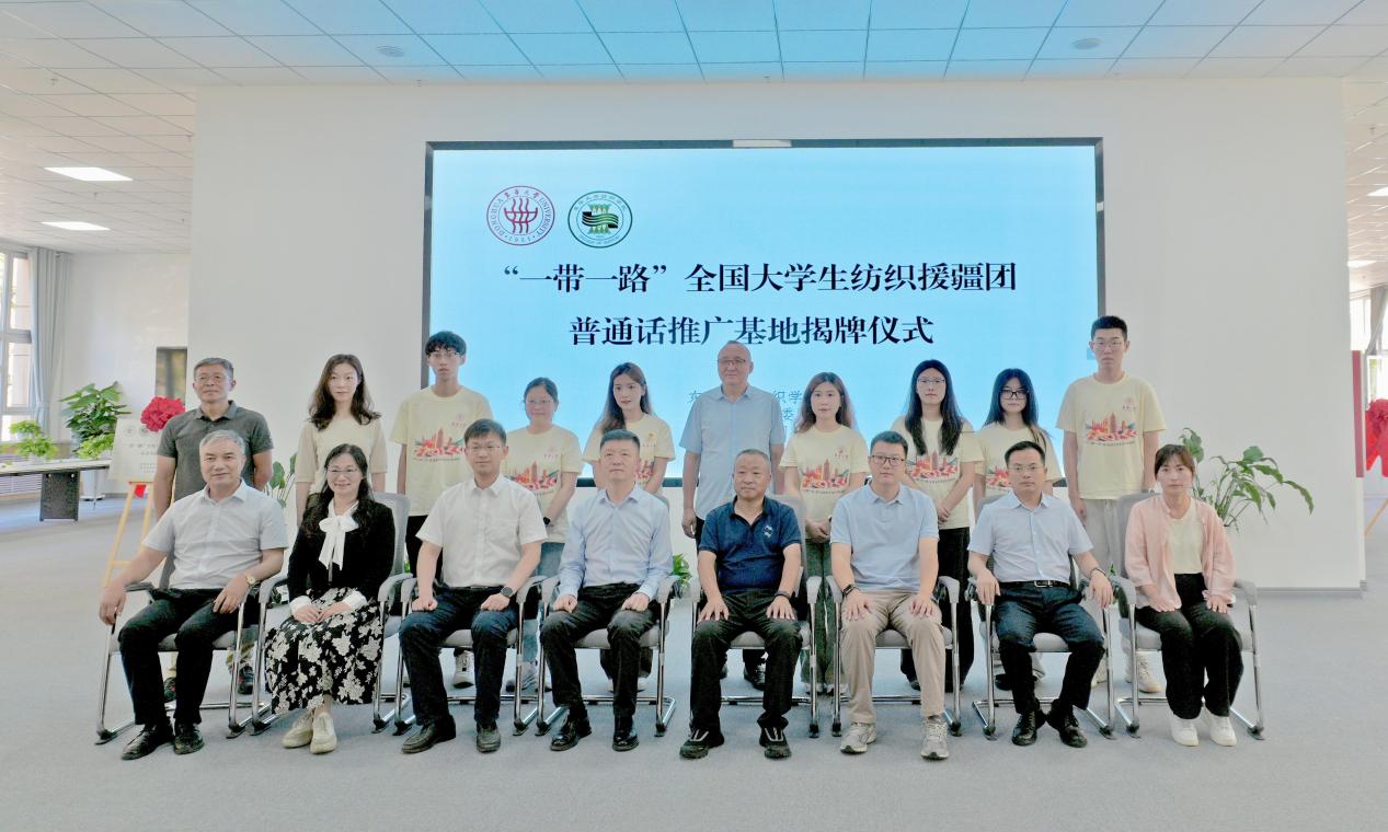 In 2025, the Xinjiang Aid Mission was approved for the national summer volunteer service project ‘Promoting Mandarin to Boost Rural Revitalization’ by the Department of Language Application and Administration of the Ministry of Education and the Department of Youth Development of Central Committee of the Communist Youth League of China. To actively explore the establishment of a long-term mechanism for promoting the national common language and script and fostering a sense of community for the Chinese nation, the university established a Mandarin promotion social practice base at the Yining County Science and Technology Bureau with the help of the Xinjiang Aid Mission. Vice President Chen Ge attended the unveiling ceremony. Moving forward, the Xinjiang Aid Mission will leverage its strengths in textile and apparel culture and academic disciplines to help establish a ‘language + culture + technology’ promotion model. Through textile workshops, it will explore ‘Business Mandarin + Textile Skills’ training courses and pioneer a ‘faculty + graduate teaching assistants’ digital teaching paradigm, ensuring the ‘Promoting Mandarin to Boost Rural Revitalization’ volunteer initiative takes root and flourishes.