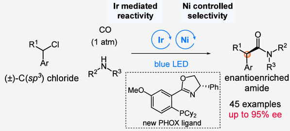 This study innovatively proposes a strategy combining photo-oxoredox catalysis with chiral nickel catalysis, successfully achieving the first asymmetric carbonyl coupling reaction between benzyl and related C(sp³)-halides with amines. This enables the synthesis of a series of chiral amides with excellent enantioselectivity. By separately regulating the reactivity and stereoselectivity through photocatalysis and nickel catalysis, the research team effectively overcame the suppression of carbon monoxide on the oxidative addition of alkyl halides which is a challenge in conventional methods. Simultaneously, through meticulous optimization of chiral ligands and reaction conditions, the reaction achieved high efficiency and selectivity. The synthetic approach developed in this study can be applied to the preparation of pharmaceutical molecules such as nonsteroidal anti-inflammatory drugs, demonstrating significant value in both synthetic chemistry and drug discovery.
